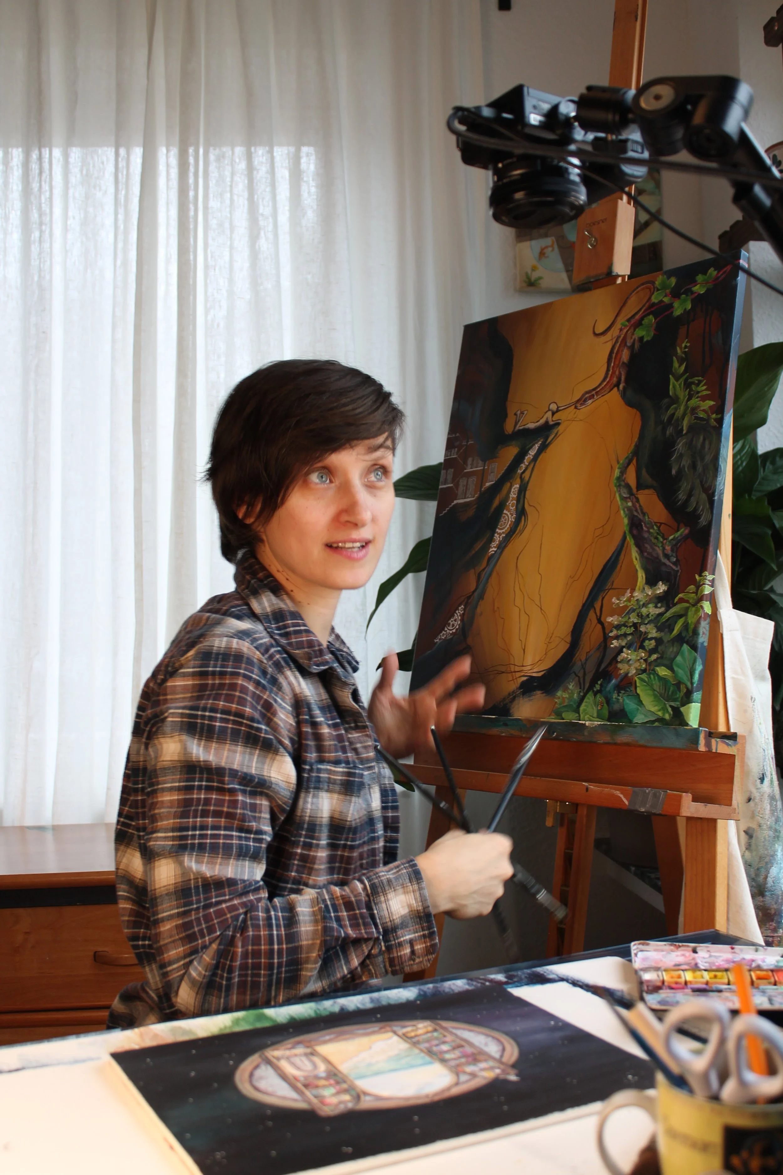 Als staatlich anerkannte Erzieherin, Sozialpädagogin, Künstlerin und Mama durfte ich in die verschiedesten Welten eintauchen, in ihnen leben und arbeiten. Das Malen und Kreativsein war hingegen schon immer ein Teil von mir. Egal ob es die unterirdische Hütte im Garten, der Jahrmarkt im Sandkasten oder die bemalten Wände im Kinderzimmer waren. Ich habe schnell gelernt, aus dem “was halt da war”, etwas ganz spannendes zu zaubern. Das Kunststudium war immer mein Traum, aber zuerst kam die Vernunft (und das “wilde Partyleben”). Auch wenn die Pädagogik für den Moment logische nächste Schritt war, liebe ich diese vielfältige und intensive Arbeit mit Menschen sehr!